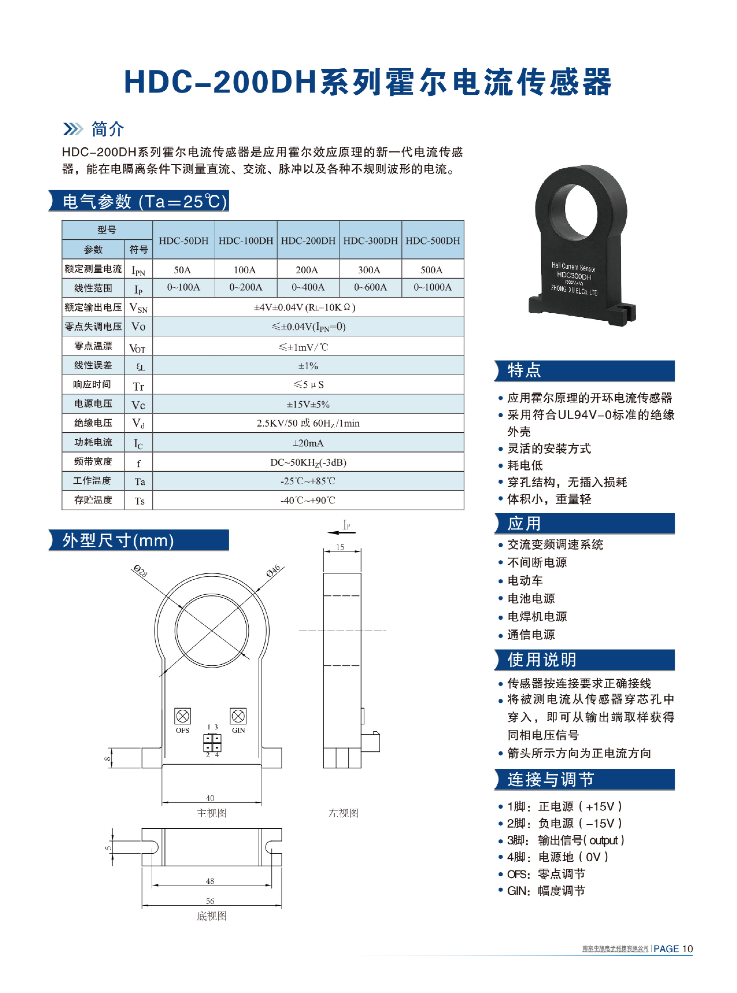 HDC-300DH系列霍爾電流傳感器是應(yīng)用霍爾效應(yīng)原理的新一代電流傳感器,能在電隔離條件下測量直流、交流、脈沖以及各種不規(guī)則波形的電流。
