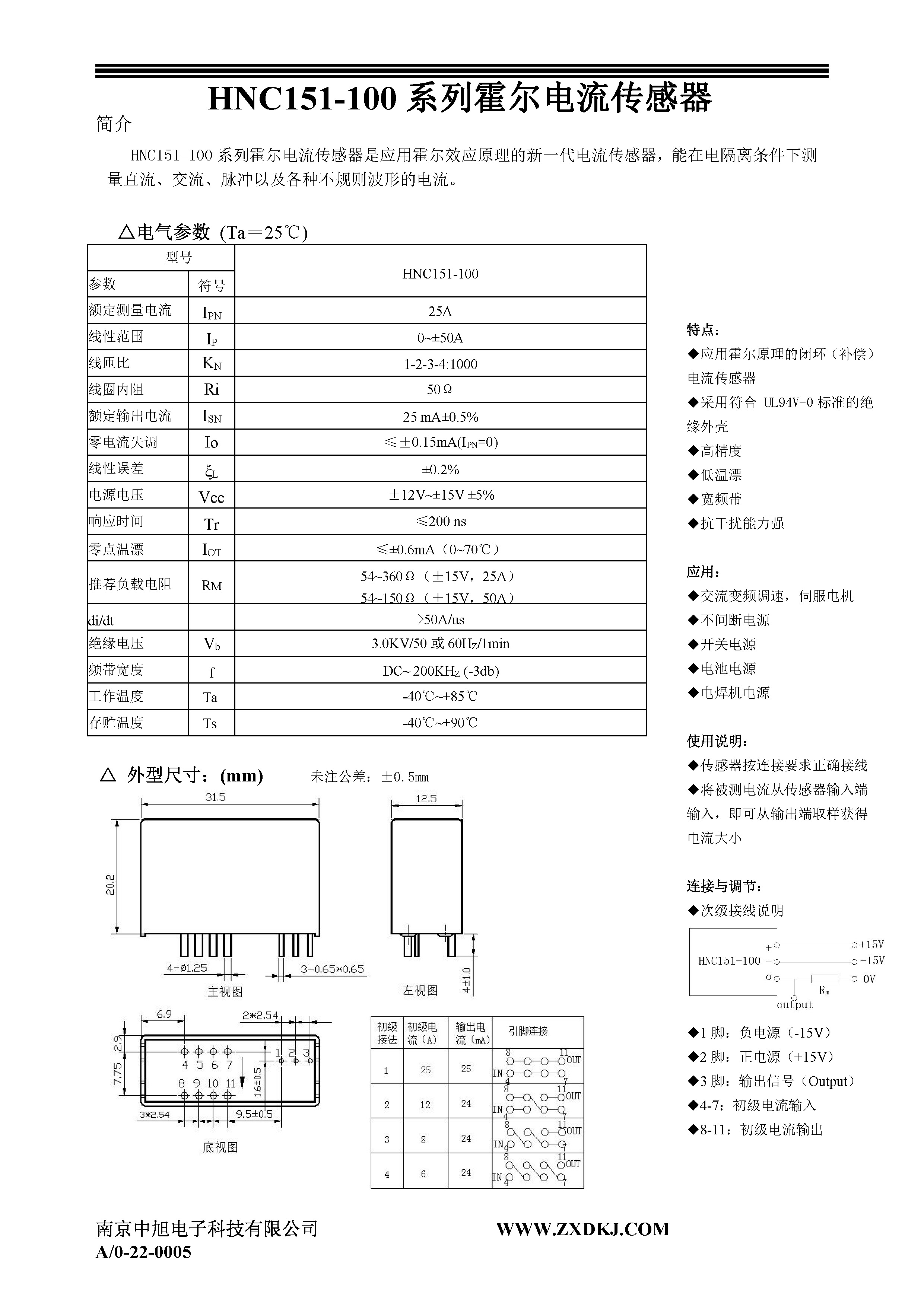 HNC151-100系列霍爾電流傳感器是應(yīng)用霍爾效應(yīng)原理的新一代電流傳感器,能在電隔離條件下測量直流、交流、脈沖以及各種不規(guī)則波形的電流。